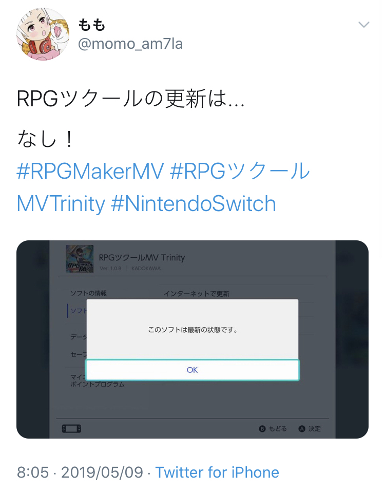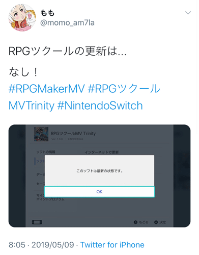 もも@momo_am7la」氏は、RPGツクールMVTの製品ID「