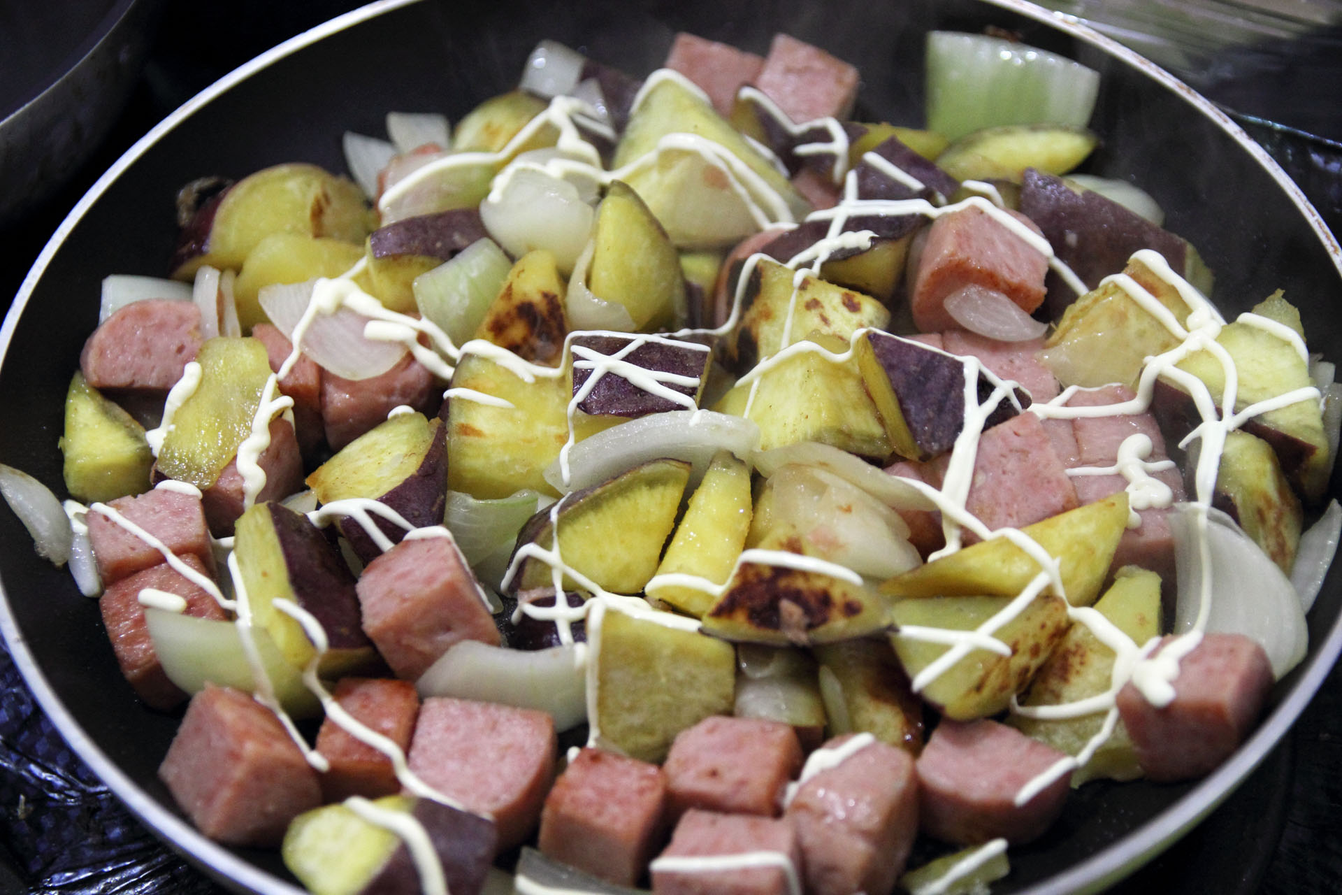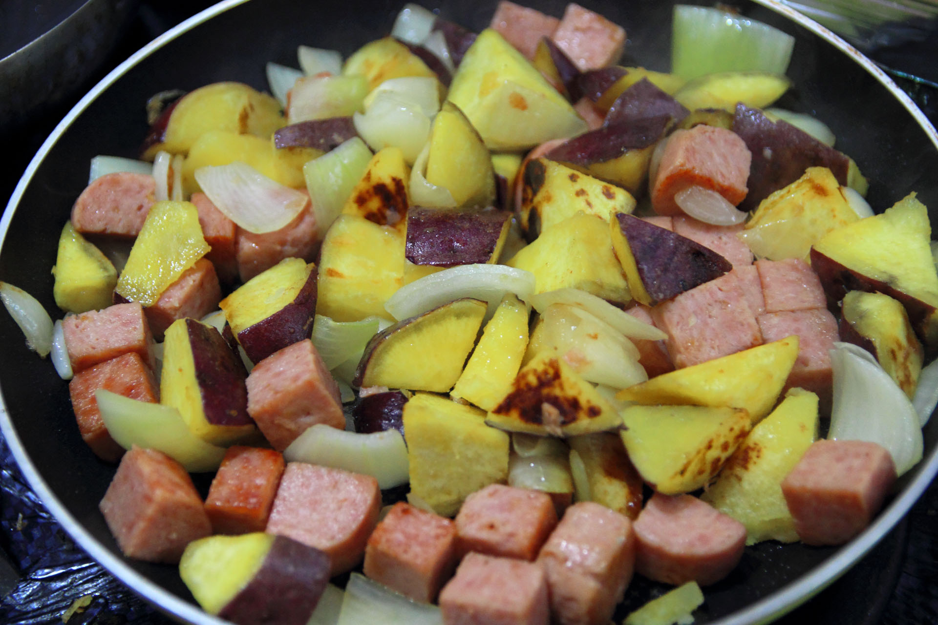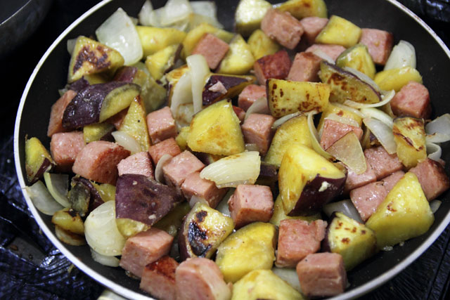 | ■ さつまいもとスパムの炒め物を作ってみた | |||||