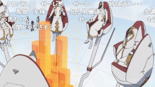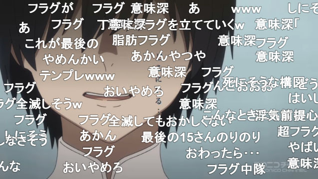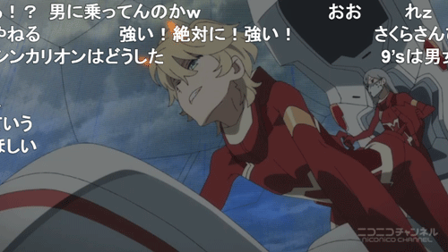 劇場版エヴァのような怒濤の展開 OPED共に無くテロップのみ、施設名とポエムもテロップで表示され挿入歌もあり 劇場版エヴァを意識した印象を受けました 大量の敵軍の中に黒い「ストレリチア」が!と驚くも演出で陰になっていた自軍でした ![]() ゼーレがゼーレしている「ゼーレ」弾幕 ![]() 「死亡フラグ」弾幕も今のところ全員生存 ![]() ![]() 「カヲル君(ホモ枠)」が受けとあからさまな腐女子狙い。この場面の反応が「ニコ生」「5ちゃん(実況)」共に一番良かった。よく見ると角が生え” 鬼 ”なので性別は無いとの推測もあるが、「ゼロツー」が少女をやっていますし。 ![]() 敵の巨大さを争うのは「宇宙戦艦ヤマト」を彷彿させられる ![]() ![]() 巨大な車輪を持つ「超レーマン級」の「叫竜」が都市をひき潰して行き、パパ達の指示で車輪に自爆を試みた「第26都市部隊」 が見事静止させましたが、「Vガンダム」で「アドラステア」の車輪に特攻した「オリファー」のパロか? ![]() 「まずいですよ!」弾幕。ダリフラは子供不殺しの契約があるのではと疑われていましたが、主人公達と交流を深めた「第26都市部隊」 が初の戦死者(生死不明のナオミを除く)。 コメを見ると「航路も決まっており棒立ちせず足下に爆弾を置けばよかったのでは?」が数件 ![]() 叫竜のコアは人間 大方の予想通りコアの中から人間が…「パラサイト」が「叫竜」になるのか「大人」がなるのか…パパ達が第13都市を自爆させ「大人」達を殺したと言うことは「叫竜」に取り込まれることを阻止した? ゾロメの母親と思われる「老婆(永遠の17歳)」も死亡か? ![]() 3倍速 覚醒した「ストレリチア」。新形態を楽しみにするも赤くなっただけ(3倍速)。子供の頃(本来)の「ゼロツー」の姿、” 赤鬼 ”を模したのか?「ゼロツー」にトゲトゲさが無くなり普通の女の子に。一人称も僕から私に。大音量で告白し合う「キングゲイナー」や「エウレカ」のノリ ![]() 疑問 14話ラストで大量に生贄が投入されるも何故15話で「ゼロツー」独りで乗ってたのか? 足下に出し殻(男性の死体)があっても良さそうな物だが → 冒頭で博士「やはりな全て食い尽くしおったかじゃじゃ馬め」 「ゼロツー」のコクピットが映されたのが後半なので雑魚を殲滅した比喩かと思っていましたが 事前に味方を吸い尽くした事を一言で片付けたと教えて頂きました。 他には何故「ヒロ」と「イチゴ」が乗れたのか?「イチゴ」には感染しないのか?「デルフィニウム」と「ストレリチア」で痴話喧嘩し帽子が吹っ飛び、他の箇所も破損したように見えましたが、次のシーンで何故直っていたのか? とても良かった 85.6% 「ヒロ」と「ゼロツー」は自由を求め外の世界へ飛び立つ宣言。パパ達は「第26都市部隊」を自爆させ、第13都市を爆破し大人達を見殺しましたので、「ヒロ」達「第13都市部隊」反逆フラグか?パパ達が他の場所に人類が居る的な発言をしたので「ザブングル」のように月などに避難してるのか? 今まで偉そうにしていた「カヲル君」率いる「9's(ナインズ)」の影が薄かった 全24話のOVAに近い方式なのに次回特番(総集編)とは…酷い ![]() □ 放送特番(総集編) ![]() ダーリン・イン・ザ・フランキス プレイバック特番 http://live2.nicovideo.jp/watch/lv311929319 お金と時間をかけたOVAのような作品で特番(総集編)の休み回が入ると萎えます 80~90年代の話数が決まっておらず50話、100話とある作品なら分かるのですが 「テッカマンブレード」のように新作カットや設定の解説があるといけないので視聴 とても良かった 74.8%(無しや) 内容は先行上映会の会場の様子、ペアごとに声優がキャラへの愛着と好きなシーンを語る コミカライズの人気漫画家「矢吹 健太朗」氏がCGを導入しスタッフを倍にした事をあかす 最後に監督のインタビューで締め円盤の特典のような内容で見る意味は無かったです