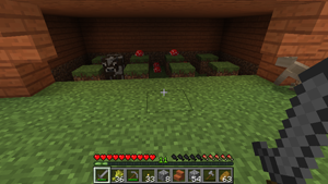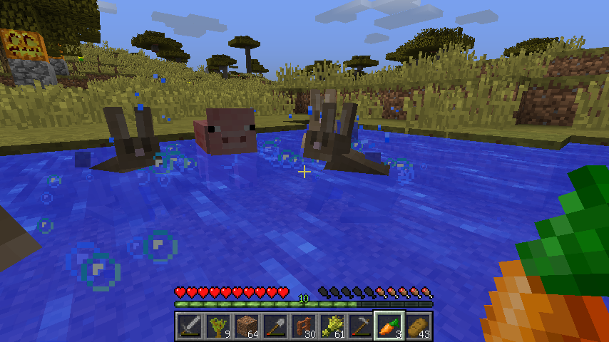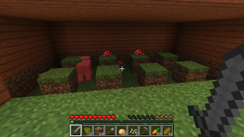 植えられていたのはゾンビのレアドロップで入手困難な「人参」です。戦闘が下手なので未だ目にしていません。これで「ブタ」を連れてこられます。「パン」ほど回復はしませんが、そのまま食べられる優れものです。数本持ち帰り畑で栽培することに致します。