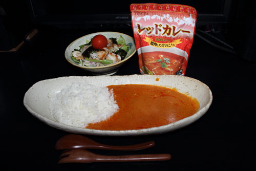 | □カレーも残り少なくなりました 近辺の「 ローソンストア100」で残りの本格100円カレーを探したところ「レッドカレー」のみとなりました。あとは低カロリーのダイエットカレーシリーズだったので保留。 「ビーフカレー」の様に面白い物がないか探したところスープご飯の素を見つけました。 ![]() □ レッドカレー 鶏肉とたけのこ入り(袋) 「レッドカレー」は普通にライスのみで食べることに致しました。 ![]() ![]() レッドカレー 鶏肉とたけのこ入り(袋)