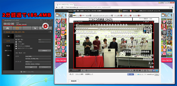 早速「ニコ生放送」を動画キャプチャしたいと思います。「ニコ生放送」は保存(DL)するのが不可能ですが、自分のデスクトップをキャプチャしますので可能となります。当方はプレミアム会員となっていますので、「タイムシフト予約」し「フォーマット・AVI」を微調整していきます。