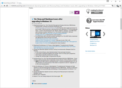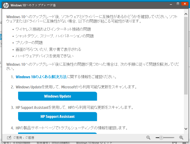 これからネットに繋ぐことになりますので、パスワードを設定しました。 Windows 10に触るのは初めてですが、コントロールパネルが無く苦戦。 「設定」→「アカウント」→「サインイン オプション」→「パスワード」→「追加」をクリック ![]() 個人パスワードの変更 ![]() 動作チェックしましたが、問題も見当たらず電源を落とし完了。 □ windows10 でモニタの電源は切れるがPC本体の電源が切れない不具合 今回の記事を書くため保存した画像を取りだし再び電源を切ると、即モニタの電源が落ちましたが、PCの電源が落ちずHDDが稼働しています。Windows 10 ではシャットダウンを早くするために電源を落とした後に更新やインストールが行われるのかと思い放置。しかし終わる様子が無いので調べたところ。Windows 10の不具合のようです。 マイコンピュータが無いのでマイピクチャに保存した画像をSDカードに入れるのに苦労しました。 Microsoftの公式コミュニティに書いてありました。 ![]() windows10にアップグレード後、モニターの電源は切れるがPC本体の電源が切れない http://answers.microsoft.com/ja-jp/windows/forum/windows_10-power/... 一番下に回答があり、URLをクリックすると「hp(ヒューレット・パッカード)」に公式サイトに飛びました。本文は英語ですが読んでみると「hp」のパソコンをWindows 7からWindows 10にアップグレードすると起こる不具合のようです。 ![]() Solved: Sleep and Shutdown issues after upgrading to Windows 10 - HP Support Forum - 5177663 http://h30434.www3.hp.com/t5/Notebook-Operating-System-and-Recovery/... 自分のモデルを入力しドライバを探す HP Customer Support - Software and Driver Downloads http://support.hp.com/us-en/drivers/ 多くのモデルに対応したドライバ Intel® Management Engine 9 Driver (1.5M) for Intel® NUC https://downloadcenter.intel.com/download/23091/... HP Support Assistant ついでにパソコンのハード的な更新(BIOSなど)を行おうとしましたが、「hp」のパソコンを最新状態に維持する管理ソフトを入れるように指示され、便利なので導入。 凄いですね。インストールしただけで、製品番号やシリアル番号が表示され自分の機種の画像まで出ます。買った当時に登録すれば、色々サポートを受けられたのでしょうが、ネット環境に無く、既にサポート期限も切れているため意味はありませんが、便利なドライバの更新ツールです。 ![]() 更新を押すと20分程度待たされ完了しました。 ![]() メールが3通届いており「Windows 10 へのアップグレード後」という気になるメールがあります。 ![]() 内容は予想通り「シャットダウン、スリープ、ハイバネーションの問題」となります。下の「Windows update」と「HP Support Assistant」の更新は済ませたばかりなので、何もありませんでした。何度かシャットダウンを試しましたが 正常に終了するようになりました。 ![]() 高速スタートアップ これは「高速スタートアップ」が原因のようです。これはメモリやCPUに情報を残し次回起動を高速にするというWindows 10の機能とのこと。シャットダウンを「Shift」を押しながらクリックすると 「高速スタートアップ」が1回限定で切れます。 もしモニタしか落ちなかった場合は、電源ボタンを長押しすれば強制終了となります。定期的に出る場合は シャットダウンを「Shift」を押しながらクリックして見てください。 最新のリカバリディスクが作れない 7月28日まで無償アップグレード可能なWindows 10を入れましたが、OSの入っているHDDが黄色信号なので、赤信号になったらHDDを交換しなければなりません。そこで「リカバリーデスク」を作成しようとしましたが、Windows 10はシステムのバックアップが出来ず、出荷時の状態に戻すのみとなります。Windows7に戻されてしまう可能性がありますね。 ![]() 数ヶ月になると思いますが、「クローンHDD」を試しOSごと丸々移行する事になると思います。 (記載:2016年5月17日) |