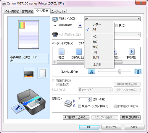 ![]() 余白が大きく出る 「フィットページ」設定は画像がカットされず全体が入りますので、97%前後に縮小され上下左右に余白ます。それを考慮しても右側の余白が大きすぎますね。 ![]() FUJIFILM 画彩 写真仕上げ 光沢プレミアム お試しの3枚を使い切りましたので、ケーズデンキへ買いに行きました。「キャノン写真用紙・光沢 ゴールド」は高いので同品質の安いサードパーティ品を探しました。今日はクリスマスと年末年始が近いため印刷用品のセールを行っており、「FUJIFILM 画彩 写真仕上げ 光沢プレミアム(Lサイズ100枚) ![]() ※中で一回転しますので表裏に注意。印刷面が下となります。 □ 全面印刷で試す ユーザ定義用紙 今回は余白が出ないように「ユーザ定義」で元写真の大きさを設定し、縮小で「フチなし全面印刷」をしたいと思います。印刷のたびに元画像を変更するのは手間が掛かりますしね。「250.81mm × 376.21mm」ですが、小数点第一までしか無くコピペも使えず入力に苦労しました。 ![]() フィットページ 「フィットページ」では余白が出てしまいますので、「フチなし全面」を選択したところ ※今回はL判となります ![]() 用紙サイズが戻される 用紙サイズが強制的に「A4」に戻されてしまいました。「フチなし全面印刷」の場合は決まった種類の中からしか選べない様です。 ![]() どうしても長細くなる 仕方なく「写真用紙 光沢ゴールド」設定で、「ユーザ定義」を「フィットページ」で印刷しました。結果は同じでした。「CANON EOS Kiss X5」の写真サイズが特殊でワイドサイズな様です。こればかりは仕方ありませんね。 ![]() 写真は写真レイアウト印刷で印刷するのがベスト 一眼レフの写真は付属ソフトで印刷するのがベストですね。 |