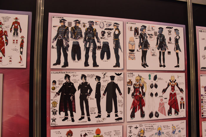 入り口から正面はグッズ販売の長蛇の列、左手の壁にはイラストらしき物が展示してあり、ここは大混雑で近づくと原画集でした。ネット上では「原画のキャラや服はいいのに3Dになると上手く表現されてない」との意見を多く聞きます。流石に盗難・破損の恐れがあるのでコピーだとは思いますが、本当に綺麗ですね。