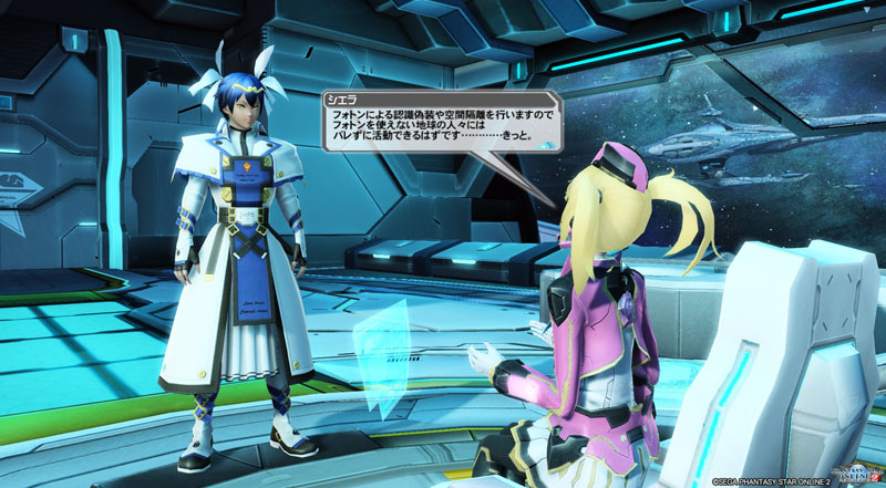 地球で普通に「ヒツギ」と会話できたのは、言語データを既に情報部が回収済みだった。今回の事を登録すると地球の情報が沢山公開された。情報部が独自に情報収集を進めていた事になり「ウルク」総司令の言うとおり今回の事件はキナ臭い。 ![]() 情報部は地球の座標データや転送先設定はあまり上手くいってなかったが、 今回の主人公と「ヒツギ」の繋がりのおかげで地球への接続を確立することが出来た。 何故繋がりを持てたか、あちらの世界にどうして飛べたかは不明。 「ヒツギ」の助けて欲しいという願いと助けたいという想いにフォトンが答えてくれたのではないか。 これで自由に地球へと行けるようになったが、調査中なので隠密活動となる。 これで新フィールド東京の開放となります。 何故東京に行けるようになったかの長い設定説明でした。 ![]() 「フォトンによる認識偽装や空間隔離を行いますのでフォトンを使えない地球の人々にはバレずに活動できるはずです…きっと。」(バレるフラグ) 何故、他の人は気が付かないんだ?騒動が起きないんだよ!という突っ込みを回避する設定ですね。 ![]() 「透刃マイの先天能力の汎用化とは言っていますが正直なところ、この技術の出所も怪しいです。」※ 透刃マイはクーナの使用しているツインダガー ナベリウスに出現したダークファルスのような反応は、あれ以来どこにも確認されていない。 「シエラ」は可能性は低いが引き続きDFを追ってみるとの事。 主人公と「ヒツギ」の繋がり(リンク)は継続して捉えている。