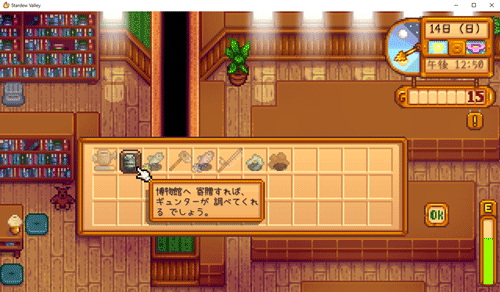 意味は分かりませんが、ゲーム的に5,000G払って「公民館」を倉庫にすればイベントが進むんでしょう?とお金を貯めようとしましたが、後日Wikiを読むとアイテム収集・交換が出来なくなり、ストーリーもハッピーに向かわないみたいですね。