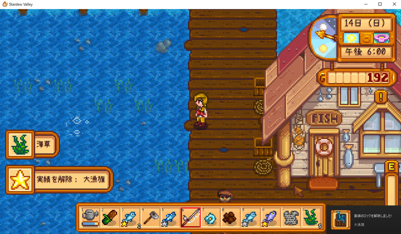 魚が大量に潜む「泡」がありますので釣りに没頭し実績「大漁旗」を解放