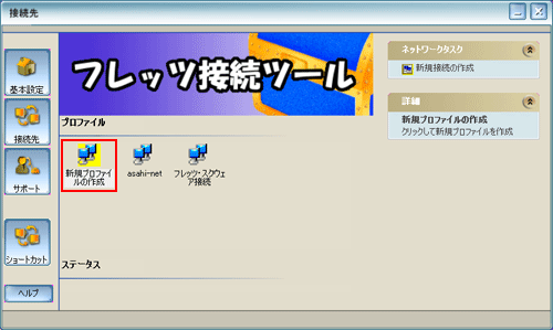 | □ フレッツ接続ツール 他の方の情報をまとめると「FTPS」は、「FTPS対応ルータ」でなければ「TLSハンドシェイク」を邪魔するので、SPI機能をOFFに出来るルータなら可能。よって専用ルータを用意する必要がある。 この事が本当ならルーターを取り払ってしまえばいい。初めてフレッツ接続ツールを使用し接続しました。 1. インストール 以下からダウンロードを行って下さい。 【NTT東日本公式サイト | フレッツ接続ツールVer.3.3の提供開始について】 いつも思うのですが、フレッツ接続ツールはネットに接続出来ない人の為のツールです。 WEBで配布されてもDL出来ないので困りますよね。 2. 立ち上げフレッツ接続ツールのアイコンをクリックして下さい 2. 新規プロファイルの作成をダブルクリック ![]() 3. 設定 プロバイダーから貰った書類に書かれてる設定を入力していきましょう